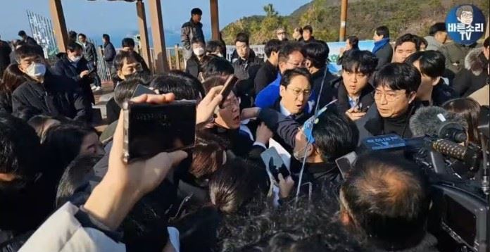 이재명 민주당 대표가 피습 당하는 순간 모습. 유튜브 바른소리TV 캡처