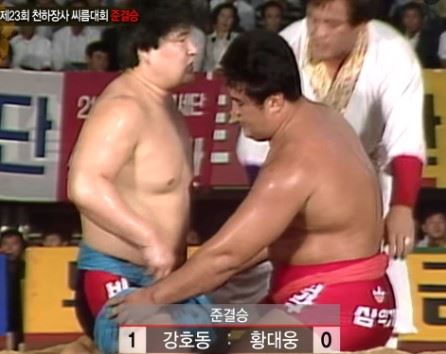 '천하장사' 강호동을 준결승에서 꺾던 '불곰' 황대웅 선수 모습. 유튜브 'KBS Joy' 캡처