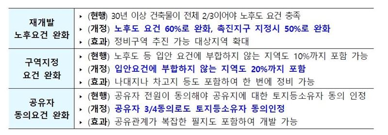 재개발 노후도 요건 완화 내용. 국토교통부 제공