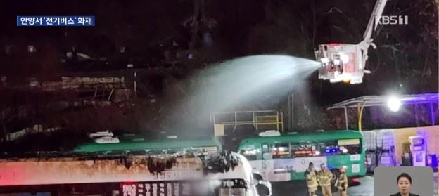 지난 12일 밤 경기 안양시 만안구의 한 버스 차고지에서 충전 중이던 전기버스에 불이 나 9시간 만에 꺼졌다. 다행히 인맹 피해는 없었으나 2억 6000여만 원의 재산 피해를 냈다.