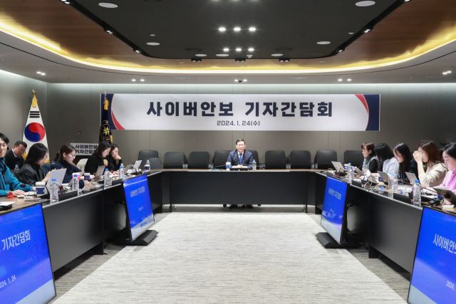 백종욱 국정원 3차장이 24일 경기 성남시 국가사이버안보협력센터에서 ‘사이버 위협 동향과 대응 활동’을 주제로 기자 간담회를 갖고 있다. 국정원 제공