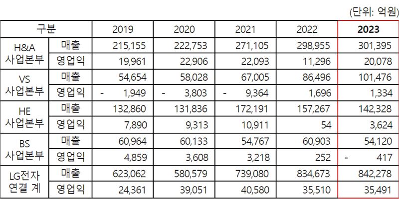 다음은 LG전자가 밝힌 사업본부별 2023년 성과 및 2024년 사업 방향이다.