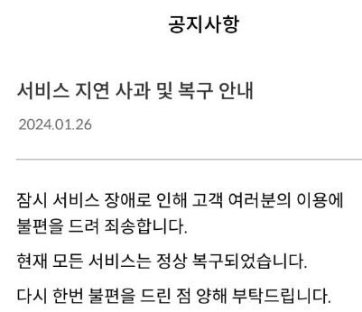 어떠한 이유로 장애가 발생한 지에 대해서는 파악되지 않았다.