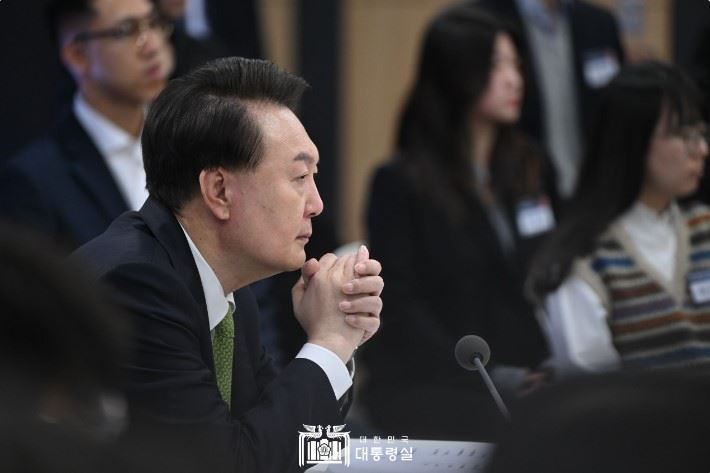 윤석열 대통령이 30일 경기 성남시 판교 제2테크노벨리 기업지원허브 창업존에서 열린 ‘상생의 디지털, 국민권익 보호’를 주제로 한 7번째 '국민과 함께하는 민생토론회'에서 관련 동영상을 시청하고 있다. 대통령실
