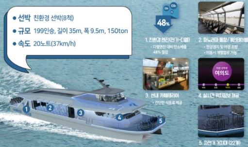 리버버스는 디젤엔진보다 이산화탄소를 48% 적게 배출하는 친환경 하이브리드 선박이다. 길이 35m, 폭 9.5m, 평균속력 17노트(시속 31.5㎞), 최대속력은 20노트(시속 37㎞)다.