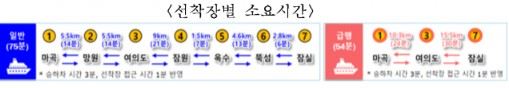 서울시는 "급행을 이용하면 마곡~여의도 24분, 여의도~잠실은 30분 걸려 마곡~잠실은 총 54분 소요된다"며 "일반 버스노선보다 21분 빠르게 이동할 수 있다"고 설명했다.