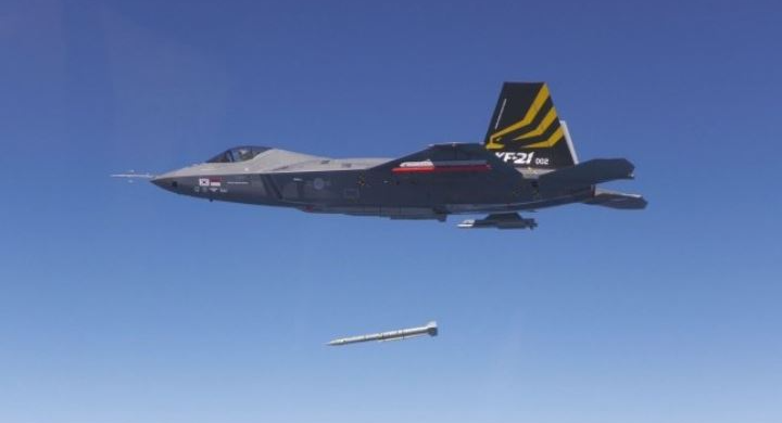 KF-21이 공대공 미사일 시험을 하고 있다. 방위사업청 제공