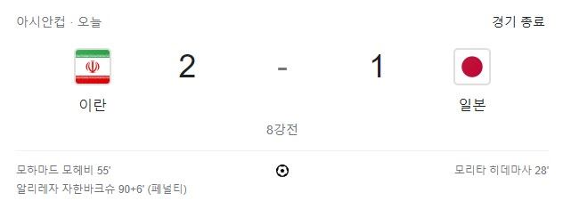 일본을 격파한 이란은 개최국이자 이전 대회 챔피언인 카타르와 우즈베키스탄의 승자와 결승행을 다툰다.