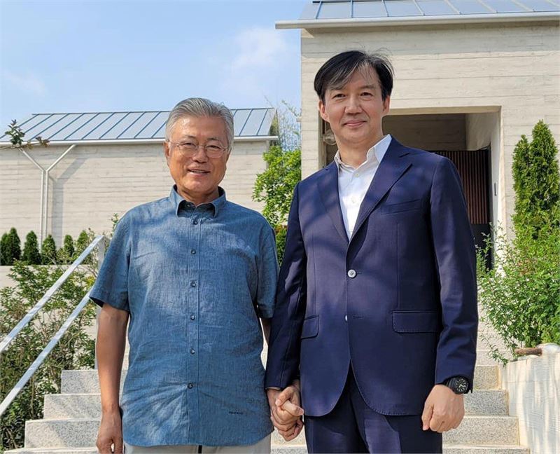 지난해 6월 양산에서 만난 문재인 전 대통령(왼쪽)과 조국 전 법무부 장관. 페이스북