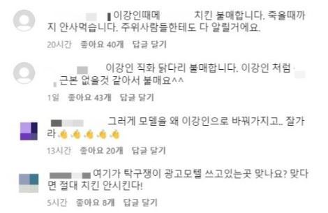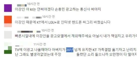 “광고 모델을 바꾸든지 광고를 내리든지 하라”, “불매운동 시작한다”, “이강인 덕분에 오늘 KT에서 SKT로 변경 신청한다” 등의 부정 댓글이 이어지고 있다.