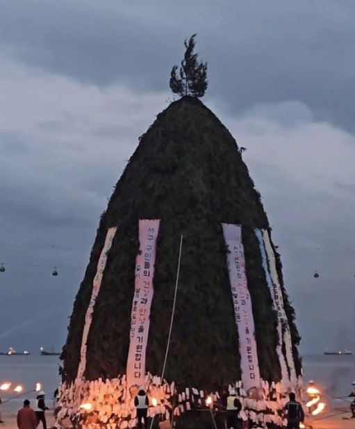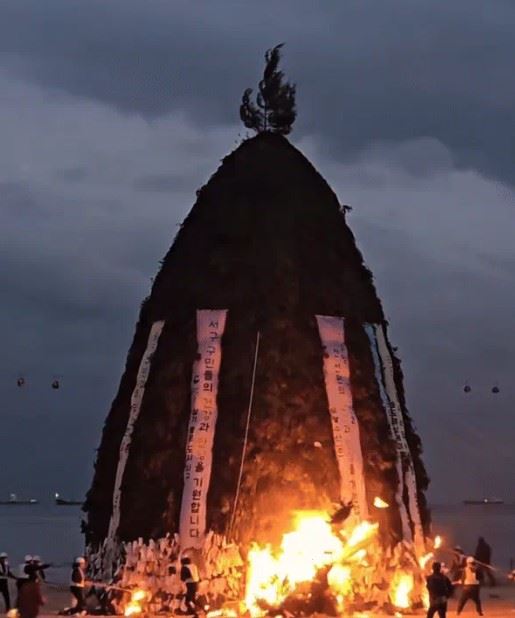 25일 부산 서구 등에 따르면 지난 24일 오후 6시 30분쯤 송도해수욕장 달집태우기 점화 순간 달집 하단 쪽에서 폭발이 발생했다.