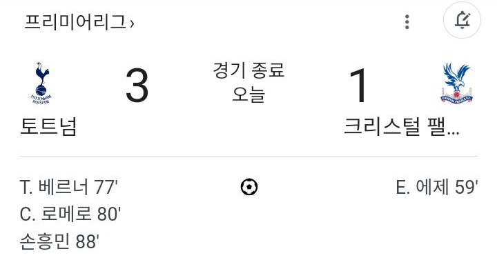 이날 승리로 토트넘은 15승 5무 6패, 승점 50으로 5위를 유지했다. 4위 아스톤 빌라(승점 52)와의 간격을 좁혀 ‘빅4’ 진입 희망을 살렸다.