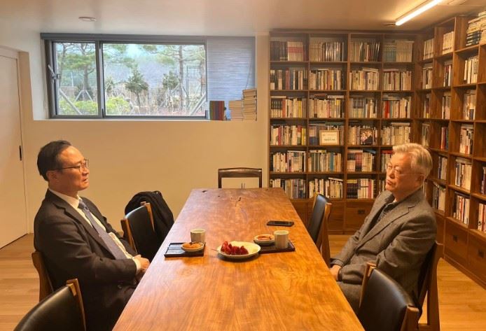 친문 좌장 홍영표 의원이 지난 4일 경남 양산 평산마을 문재인 전 대통령 사저를 찾아 거치를 논의하고 있다. 홍 의원은 공천에서 컷오프 됐다. 홍 의원 페이스북