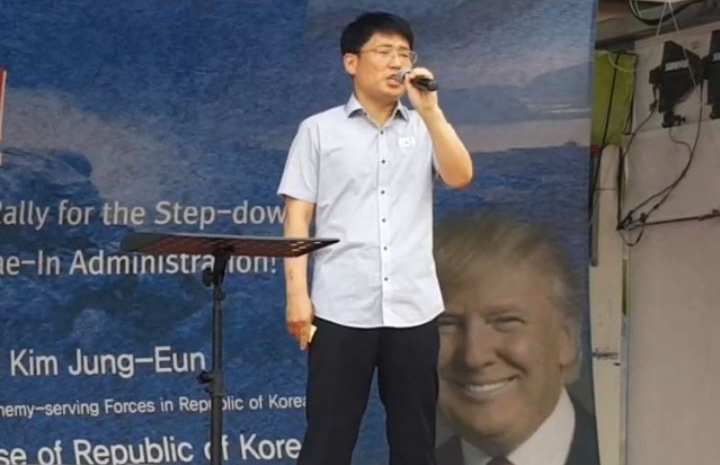 도태우 국민의힘 후보(대구 중·남)가 지난 2019년 8월 서울 중구 대한문 앞에서 열린 태극기집회에 참석해 발언하고 있다. 유튜브 캡처
