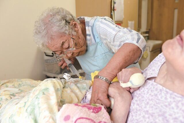 일본 미에현 쓰시에 있는 고령자 시설 '이치시노사토’에서 99세 현역 간호사로 일하고 있는 이케다 기누씨는 “정년은 필요없다”고 말한다.