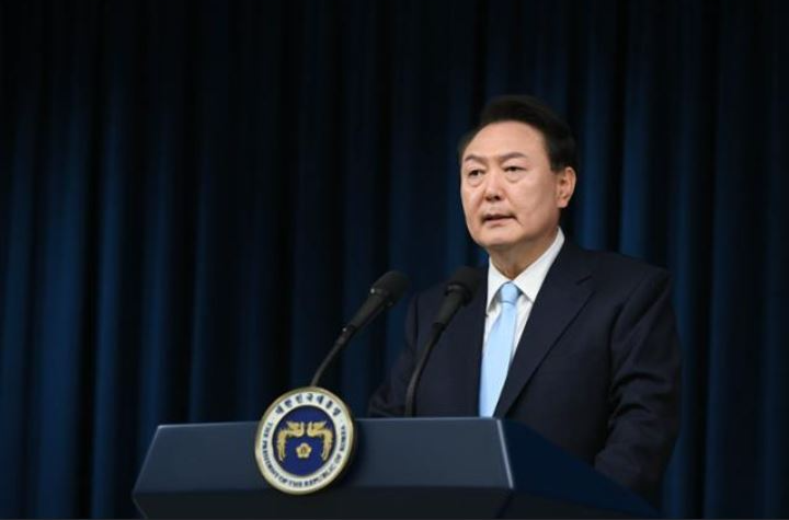 윤석열 대통령이 1일 서울 용산 대통령실 청사에서 의료개혁 관련 '국민께 드리는 말씀' 대국민담화를 하고 있다. 대통령실