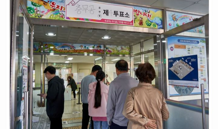 경남 진주시의 한 선거구 투표장 모습. 정창현 기자