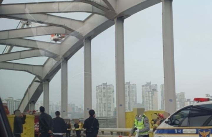 17일 소방과 경찰에 따르면 이날 오전 5시 52분 한강대교에서 40~50대로 추정되는 남성이 교량 구조물 위에 올라 투신하려 한다는 신고가 접수됐다.