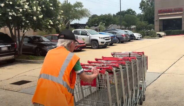 미국의 한 마트에서 카트 정리 아르바이트를 하는 딜런 매코믹(90) 씨의 모습. ‘고펀드미’(GoFundMe) 캡처