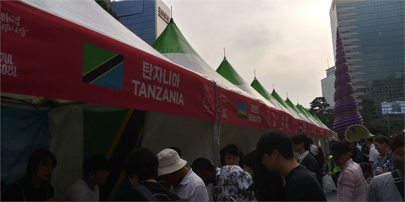 축제가 흥미로웠던 것은 각국의 민속놀이 공연도 볼거리였지만 먹거리였습니다. 평소 맛을 보기 어려운 음식을 먹기 의해 부스마다 줄이 이어져 장사진을 이뤘습니다.
