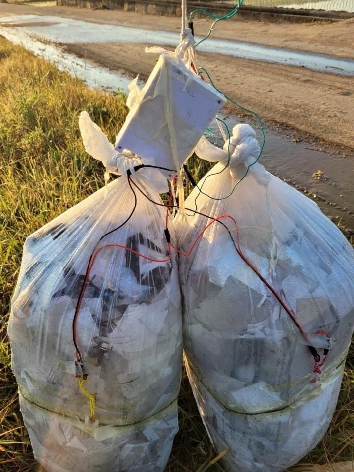 '오염 풍선'에 매달린 봉투에 각종 쓰레기가 담겼다. 페이스북 '육군훈련소 대신 전해드립니다' 캡처