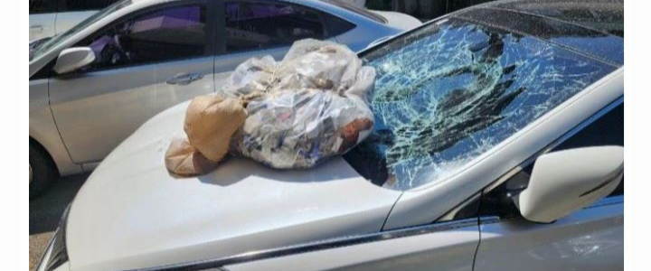 경기 안산시 한 빌라 주차장에 세워진 차량 유리창이 '오물 풍선' 적재물로 깨진 모습