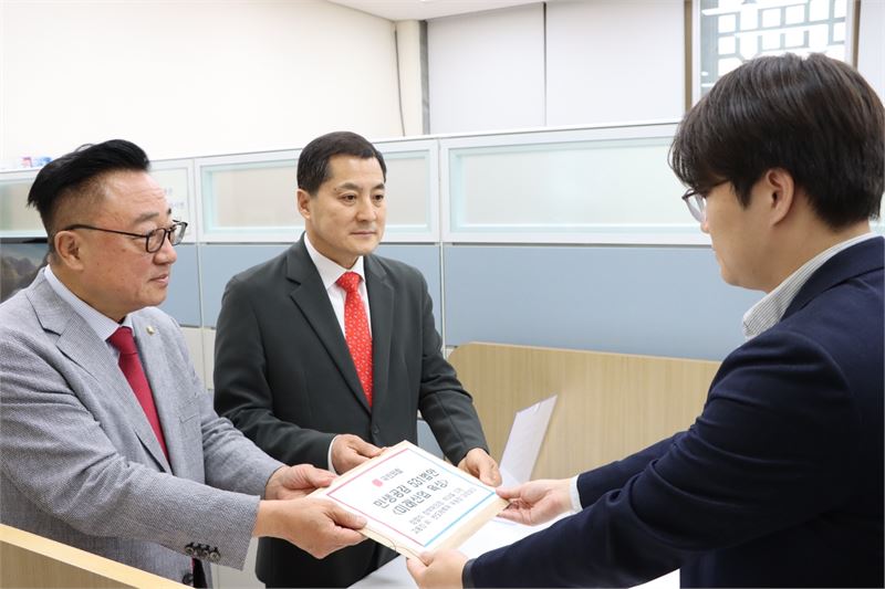 박대출 의원(오른쪽)이 생명공학육성법안 일부개정안을 제출하고 있다. 박 의원실