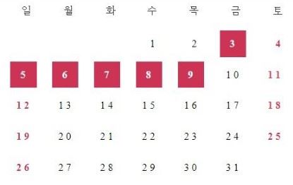3일 이상 연휴는 추석 연휴 등 모두 6번이다.