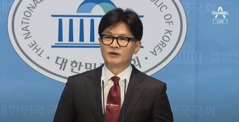 한동훈 전 국민의힘 비상대책위원장이 23일 오후 서울 여의도 소통관에서 열린 당대표 출마선언 기자회견에서 출마선언을 하고 있다. 채널A 중계 캡처