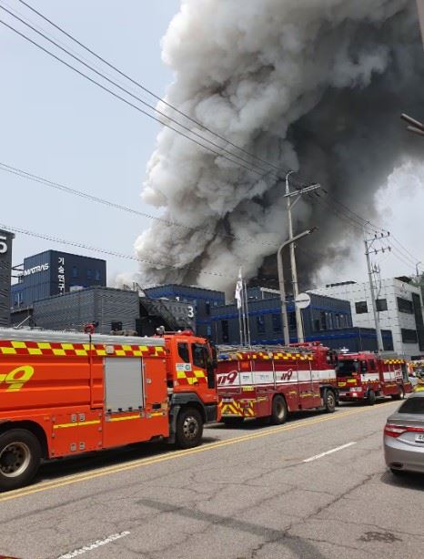 소방당국에 따르면 화재는 공장 3동 2층에서 시작됐다. 리튬 배터리 가운데에서 폭발하듯 연소가 시작돼 불이 번졌다.