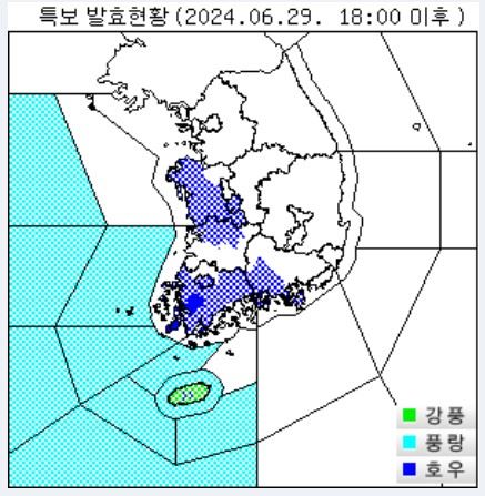 ■ 다음은 특보 발효 현황/ 발효 시각 : 2024년 6월 29일(토) 18:00 이후