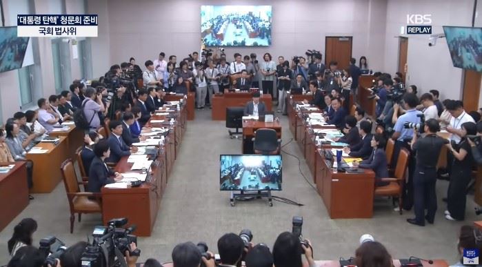 법사위는 9일 오후 전체회의를 열고 윤 대통령 탄핵소추안 즉각 발의 요청에 관한 청원을 상정하고 청문회 실시 계획서 채택의 건과 서류 제출 요구의 건, 증인·참고인 출석 요구의 건을 더불어민주당을 포함한 야당 단독으로 처리했다.