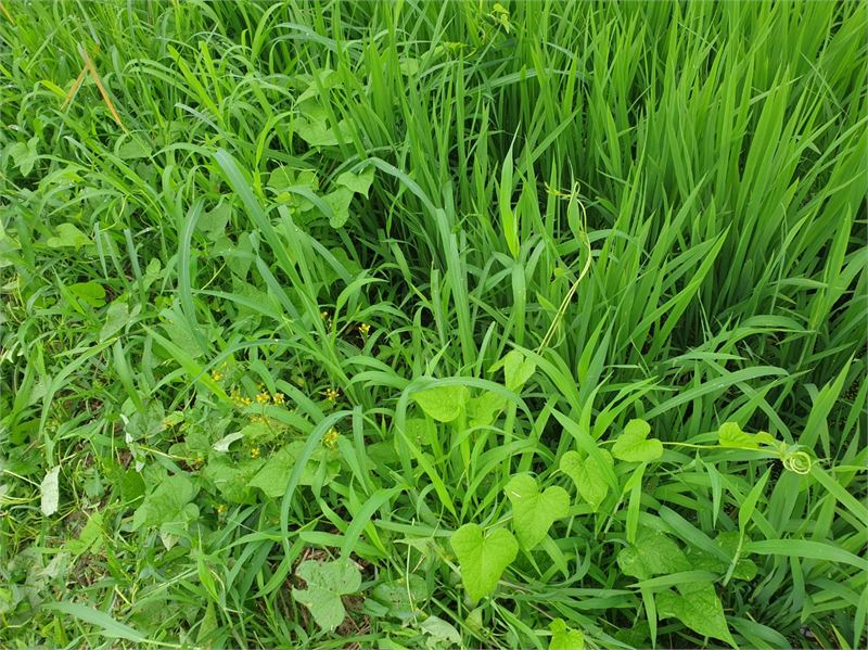 벼논 논둑에 무성하게 자란 잡풀들. 이맘 때 농가에선 풀 베는 작업을 한다. 정창현 기자