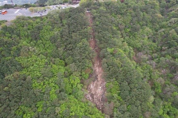 산림청은 16일 경북 경주시 토함산 3곳에서 집중호우로 인한 ‘땅밀림 산사태’ 현상이 나타났다고 밝혔다.