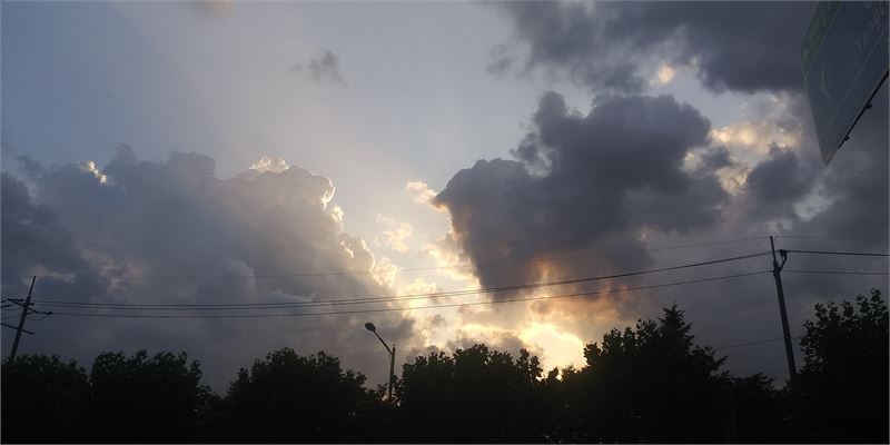 짙은 장마 구름과 햇살이 동시에 보인 하늘에서 천둥이 치고 있다. 날씨 이미지. 정기홍 기자