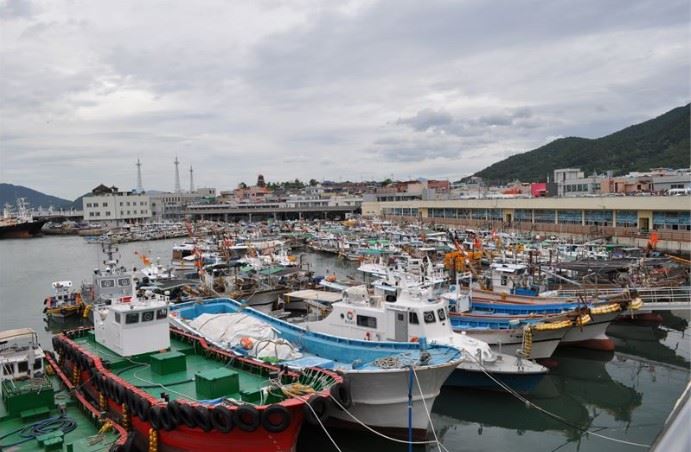 경남 사천시 삼천포항에 정박 중인 어선들. 사천시