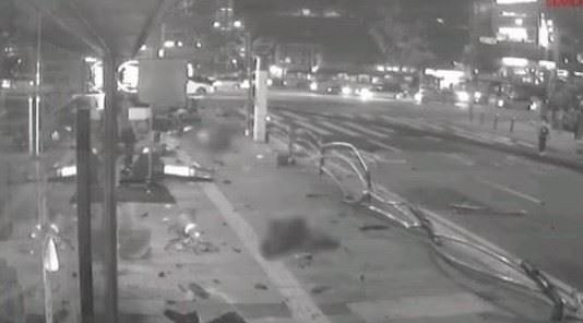 서울 시청역 근처에서 9명의 사망자가 발생한 사고 직후의 현장 CCTV 영상. 사고 차량이 받은 가드레일과 부서진 파편들이 늘려 있다. 종편 MBN