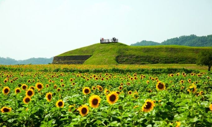 경기 연천군 호로고루 유적지에 핀 해바라기. 연천군