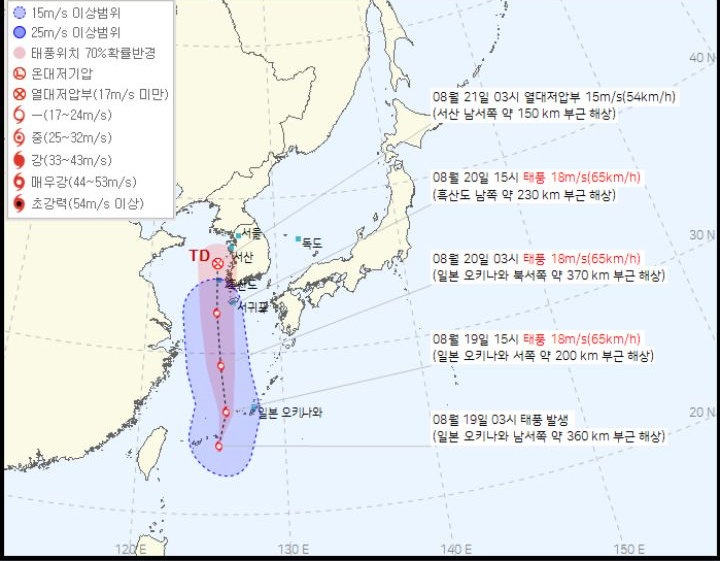 하지만 ‘종다리’는 소형 태풍으로 그럴 시간도 없이 서해상에서 소멸하며 남쪽에서 끌고온 열기와 수증기만 한반도에 놓고 사라질 것으로 예상된다.