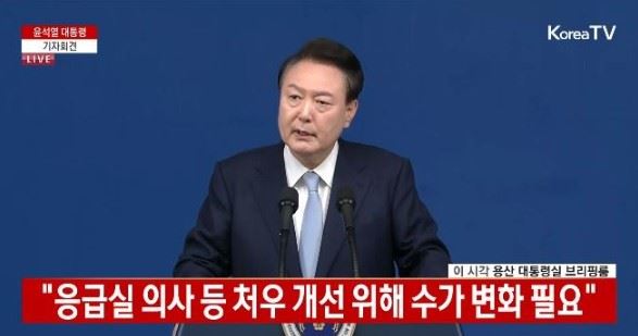 윤석열 대통령은 29일 용산 대통령실에서 열린 '국정브리핑 및 기자회견'에서 "비상 진료 체제가 원활하게 가동되고 있다"며 "정부는 헌신적인 의료진과 함께 의료 개혁을 반드시 해내겠다"고 밝혔다.