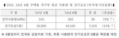 이는 8월 말까지 집계된 검침 자료를 바탕으로 한 것으로, 9월 말에 확정되는 최종적인 8월 전기 사용량과 전기요금은 더 오를 가능성이 크다. 가족 수가 많아 전기 사용량이 많은 가구는 단계별 누진 구간을 지나 체감하는 전기요금 상승 부담이 더 커질 수 있다.