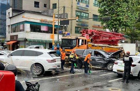 서울 성동구 성동세무서 앞 도로에서 난 7중 추돌 사고 현장. X(엑스) 캡처