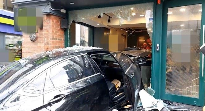 20일 경찰과 소방 등에 따르면 이날 오전 10시 32분쯤 서울 강북구 미아역 인근 미아사거리에서 제네시스가 인근 상가 1층의 햄버거 가게로 돌진했다.