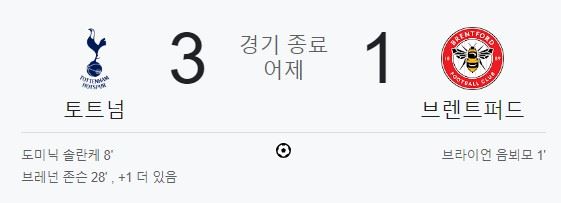 브렌트포드의 브라이언 음뵈모가 포터의 크로스를 받아 때린 논스톱 발리슛이 토트넘의 골대 왼쪽 상단에 꽂혔다.