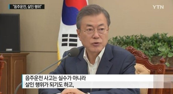 당시 문 대통령의 발언은 ▲“음주운전 사고는 실수가 아니라 살인행위가 되기도 하고, 다른 사람의 삶을 완전히 무너뜨리는 행위가 되기도 한다” ▲“특히 재범 가능성이 높은 음주운전의 특성상 초범이라 할지라도 처벌을 강화하고 사후 교육시간을 늘리는 등 재범방지를 위한 대책을 더욱 강화해주기 바란다” ▲“음주운전은 습관처럼 이뤄진다. 이제는 음주운전을 실수로 인식하는 문화를 끝내야 할 때” 등이다.