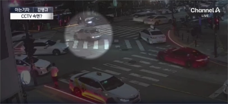 문다혜 씨가 모는 캐스퍼 차량(원 안)이 지난 5일 새벽 서울 용산구 이태원 사거리에서 불법 좌회전을 하고 있다. 채널A 뉴스 캡처