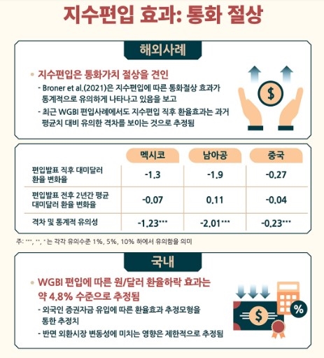 정부는 이 지수 편입을 계기로 최대 90조 원의 해외 자금이 한국 채권시장에 유입될 것으로 기대하고 있다.