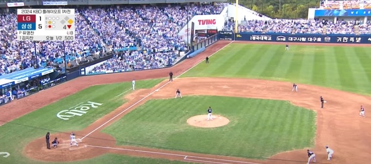 13일 대구 삼성라이온즈파크에서 열리고 있는 삼성과 LG의 프로야구 포스트시즌 PO 1차전. 삼성 라이온스가 LG 트윈스를 10-4로 꺾었다. KBO