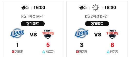 KIA 타이거즈가 삼성 라이온즈를 상대로 한국시리즈(KS) 2연승을 했다.