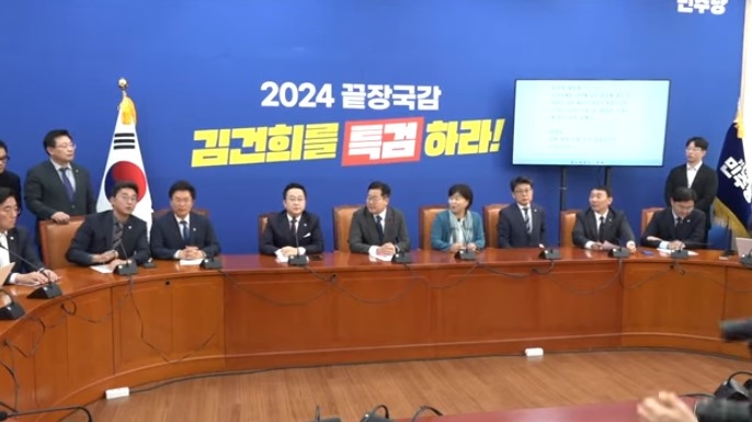 앞서 민주당 박찬대 원내대표는 이날 '윤 대통령 부부의 공천개입 의혹' 핵심 인물로 지목된 명 씨와 윤 대통령 사이의 통화 내용을 공개했다.